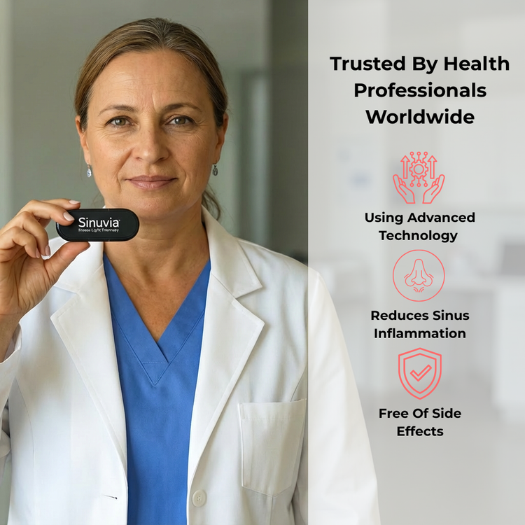 Clinically proven 660nm red light therapy targets sinus inflammation and clears blocked nasal passages no sprays, no drugs.
