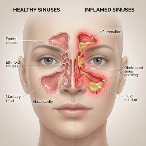 We heard the same story again and again from family, friends, and thousands of people online. Sinus problems weren’t caused by “too much mucus” alone. Doctors and specialists pointed to the same root cause: Chronic inflammation deep inside the sinuses. Most solutions never reach that level.